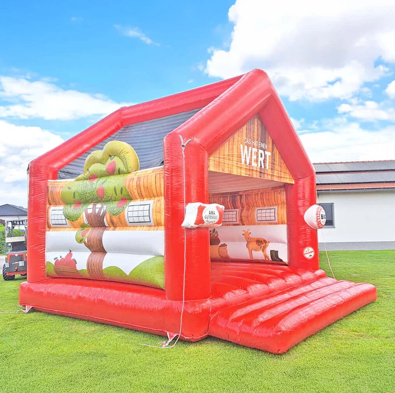 Jetzt werden offizielle Kinderveranstaltungen zu einem unvergesslichen Erlebnis: AMA Marketing stellt kostenlos Hüpfburgen im originellen Stall-Design zur Verfügung. Mit lustigen Tiermotiven wie Schwein, Huhn, Kuh und Ziege lädt der Hüpfburg-Stall Kinder zum Spielen, Hüpfen und Entdecken ein.